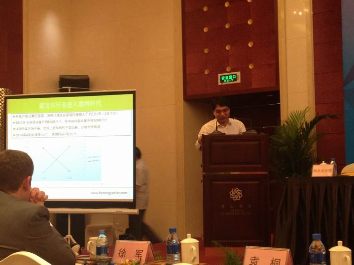 圖為北京合能陽光新能源技術有限公司總經理肖宗杰作了《微利時代下的藍寶石品質控制》的專題演講 。